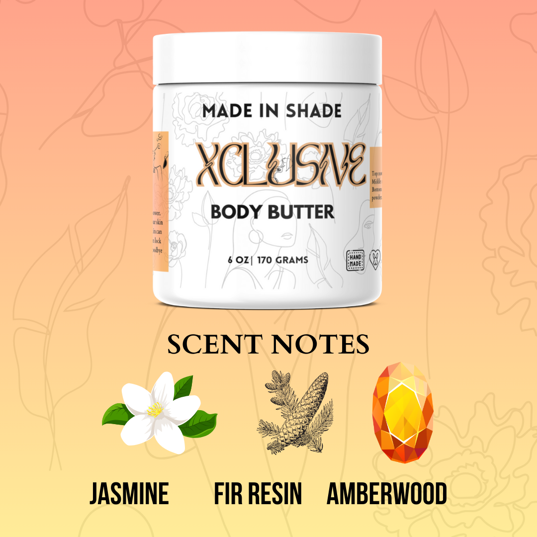 Indulge in a lavish skincare ritual with our Xclusive body butter, a luxurious blend designed to elevate every moment of your self-care. As you smooth on this rich, creamy formula, feel an immediate sense of sophistication, like slipping into the finest silk. Infused with the skin-loving benefits of glycerin, this decadent body butter envelops your skin in a cocoon of deep hydration, ensuring a velvety smooth finish that feels both elegant and indulgent.